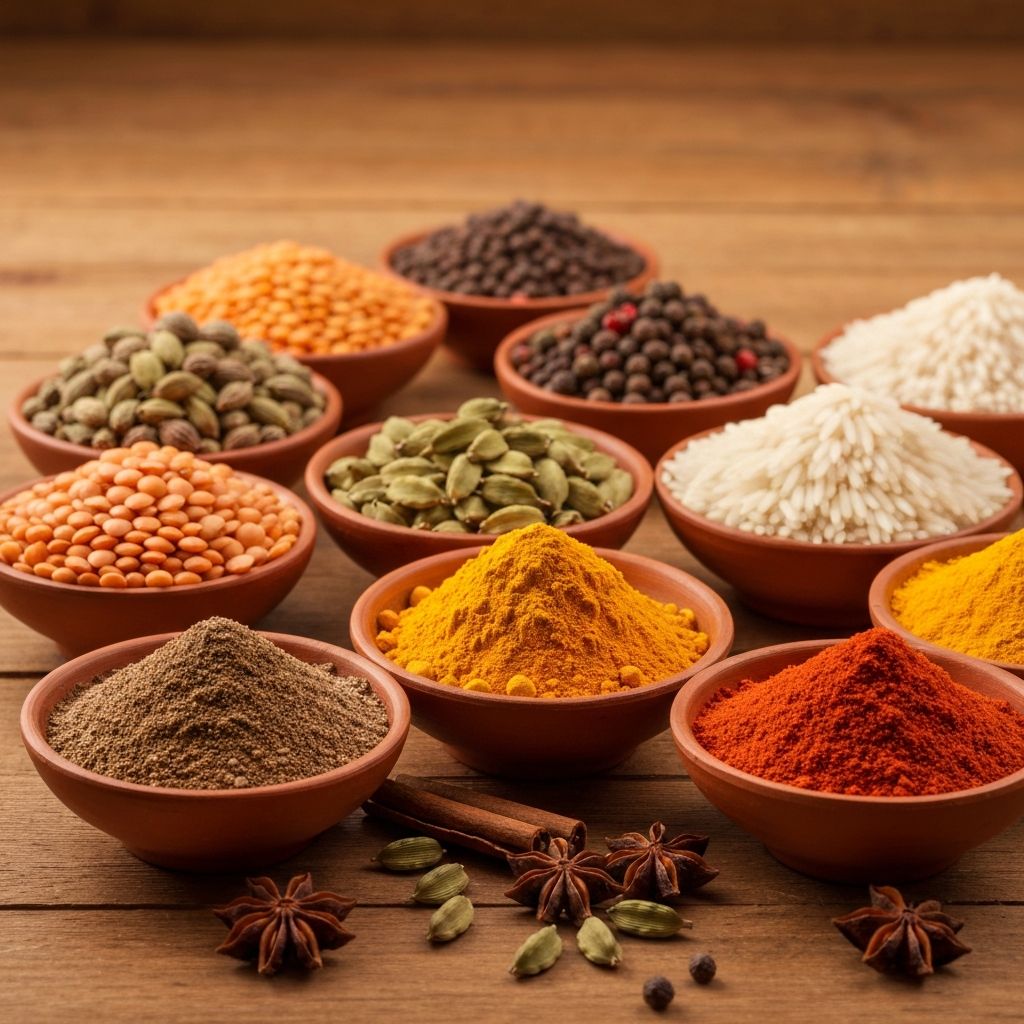 Stock your pantry with a wide range of authentic Indian grocery essentials. From aromatic whole spices to premium basmati rice and protein-rich lentils — everything you need for home cooking.